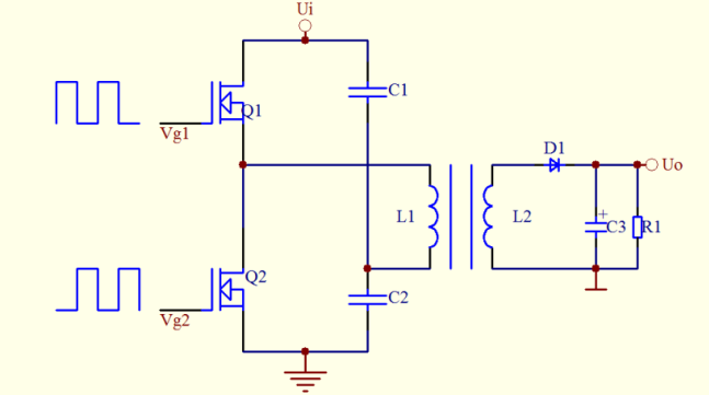 半橋式:相對(duì)于全橋式少用了一半的管子,L1兩端電壓為開(kāi)關(guān)電源電壓的一半,可是要提高變壓器的匝數(shù)比才能夠滿足要求。同時(shí)也給驅(qū)動(dòng)電路的規(guī)劃帶來(lái)了便利。只需要兩路阻隔并且不共地的信號(hào)即可。