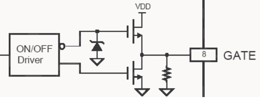 Gate:PWM脈沖輸出端。圖騰柱(即推拉輸出電路)輸出極驅(qū)動功率開關(guān)管。
