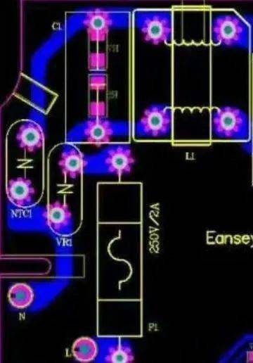 留意這兒穩(wěn)妥絲之后,接壓敏電阻VR1再接x2電容的走線(xiàn),完全是繞了一個(gè)彎這是為什么?